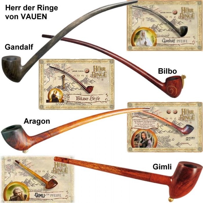 Actualmente hay fabricantes como la prestigiosa marca Vauen, que han replicado las miticas pipas que usaron los personajes de «El señores de los anillos» y «El Hobbit», en una serie limitada llamada «Auenland» en la que ademas de las miticas pipas de cada personaje de la saga, crearon cinco labores imitando su particular Old Toby en versión tabaco, todos fabricados por Kohlhase & Kopp para Vauen.
